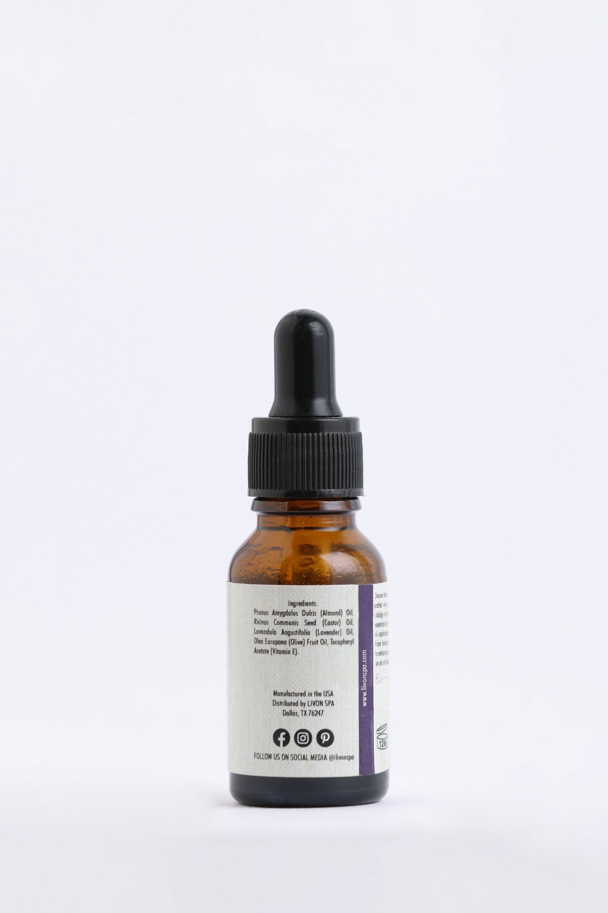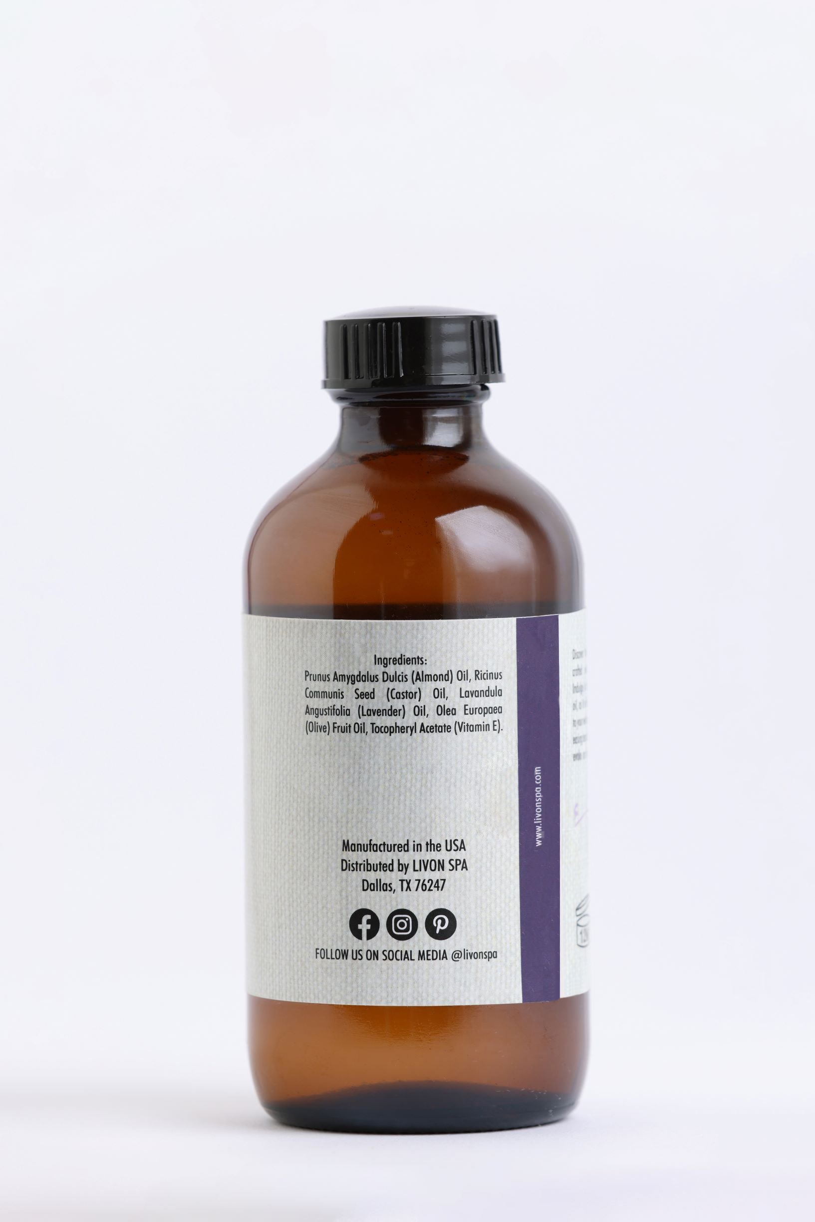 Ingredients: Prunus Amygdalus Dulcis (Almond) Oil, Ricinus Communis Seed (Castor) Oil, Lavandula Angustifolia (Lavender) Oil, Olea Europaea (Olive) Fruit Oil, Tocopheryl Acetate (Vitamin E).